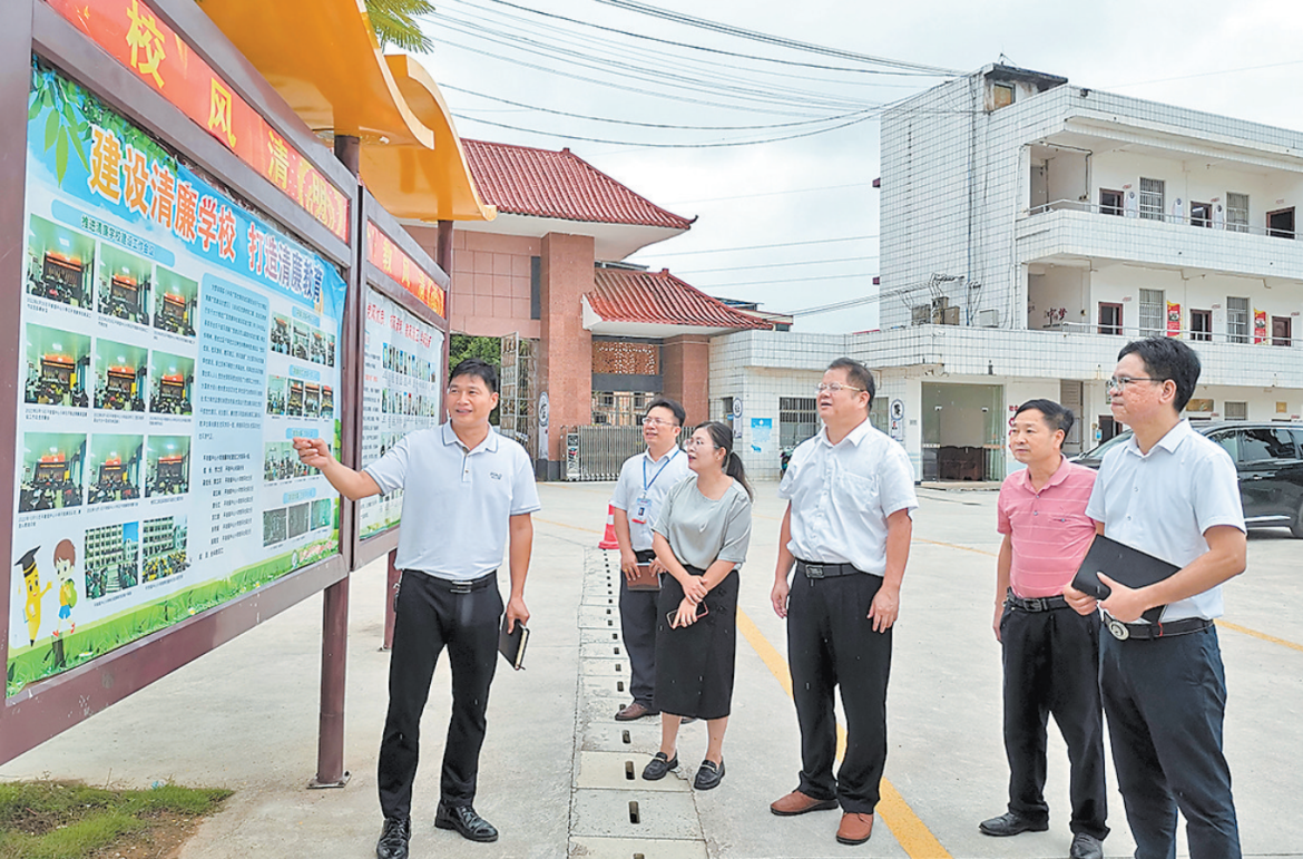 灵山县政协副主席温念军(右三)率县政协委员调研清廉学校建设。 韦文锋/摄