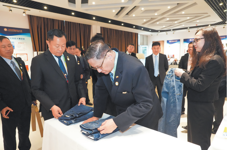 缅甸工业部副部长、体育与青年事务部副部长一行在广西经贸职业技术学院“衣路工坊”国际产教融合展示中心实地参观