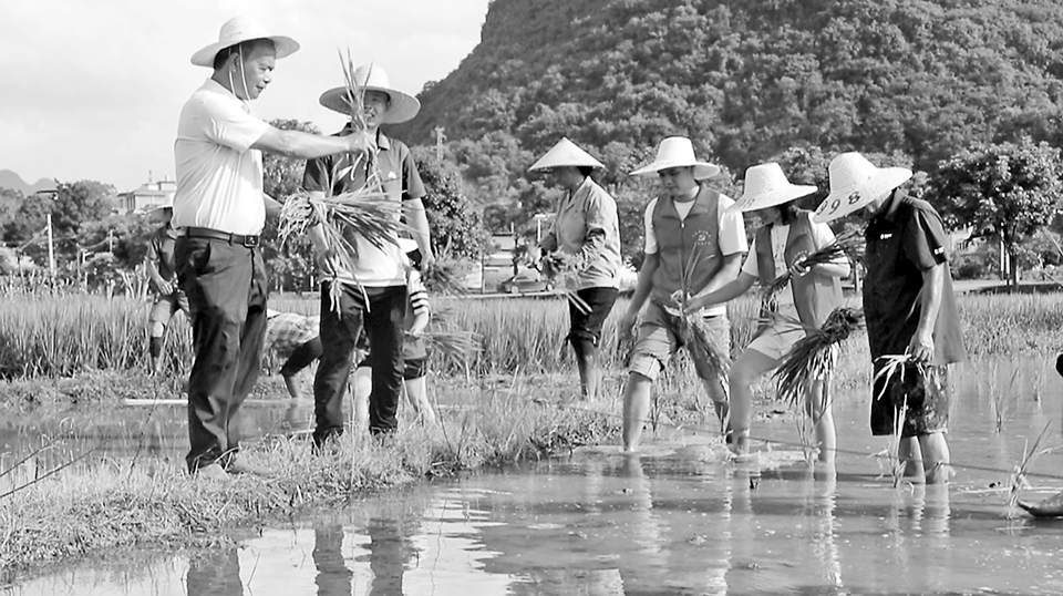 近期,平乐县二塘镇遇到持续降雨造成的洪涝灾害,大面积农田不同程度被淹。平乐县二塘镇政协工作站组织委员和志愿者抢抓农时,利用洪涝灾害后的晴好天气帮助农户补插秧苗,全力以赴保证粮食不减产。 谢万富/摄