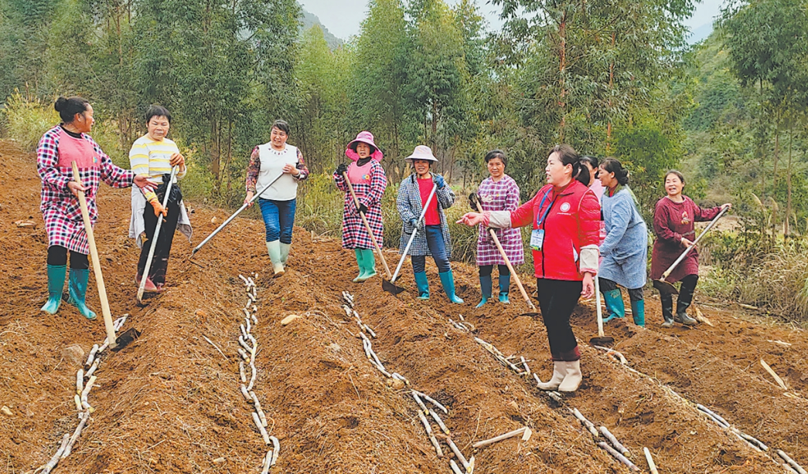 连日来,忻城县政协组织委员“巾帼志愿服务队”深入各村甘蔗种植基地,现场指导当地农民种植甘蔗,助力特色产业增产增收。活动开展以来,先后向农民群众发放种养技术资料5000多份,举办专题讲座8场(次),培训350多人次,受到广大群众欢迎。罗金城/摄