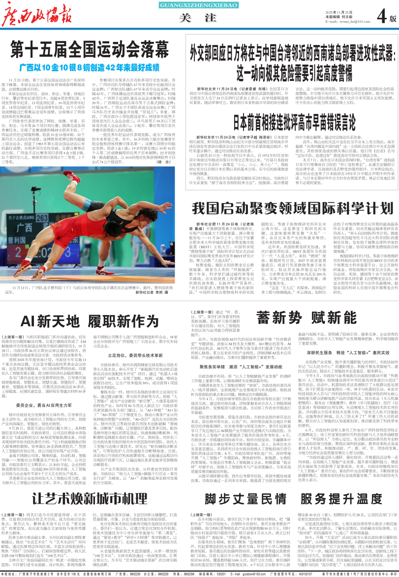 - 第 4 版: 导读 第十五届全国运动会落幕 广西以10金10银8铜创造42年来最好成绩