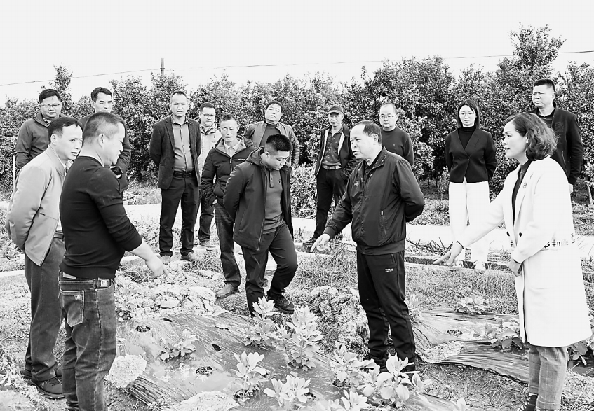 12月17日,罗城仫佬族自治县政协组织农业界委员开展“守牢耕地红线,巩固拓展耕地保护攻坚成果”专题视察暨第四次轮值活动,围绕守牢耕地红线、巩固拓展耕地保护攻坚成果建言献策。图为委员们在龙岸镇榕山村水碾屯蚕豆种植基地视察。 韦如代/摄