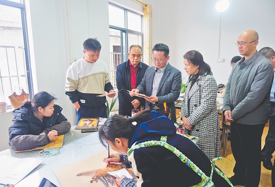 1月16日,容县政协主席刘崇泽率调研组赴松山镇实地走访企业,调研玉商玉工回归工作情况,倾听企业诉求,积极协调解决发展难题。图为调研组深入企业了解产品生产、市场开拓及用工需求等情况。李泳霖/摄