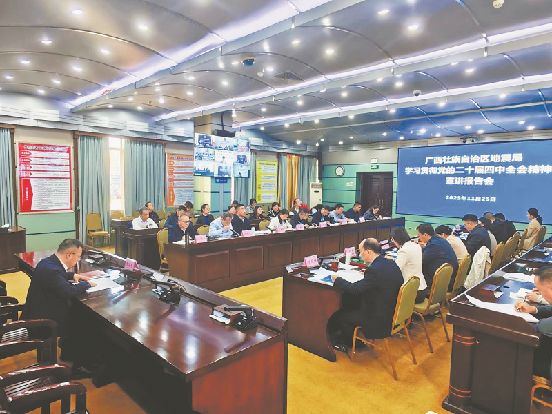 2025年11月25日,自治区地震局召开学习贯彻党的二十届四中全会精神宣讲报告会,局党组书记、局长熊宗龙为全体干部职工作专题宣讲。