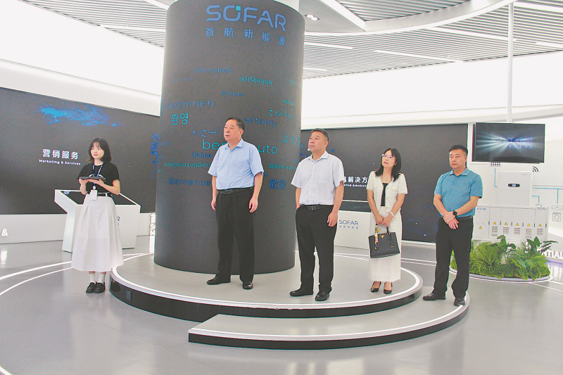 2025年5月15日,市政协主席胡建华(左二)围绕人工智能专题赴广东考察学习。图为在深圳市首航新能源有限公司考察。