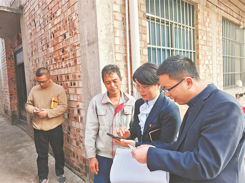 自治区社保中心党委委员、副书记韦红艺(右二)深入基层指导外出务工人员办理“休眠账户”清退业务。