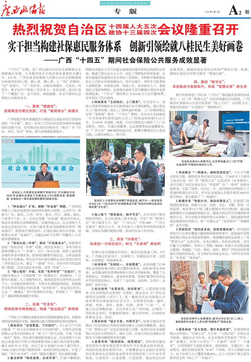 - 第 2 版: 专版 实干担当构建社保惠民服务体系 创新引领绘就八桂民生美好画卷——广西“十四五”期间社会保险公共服务成效显著