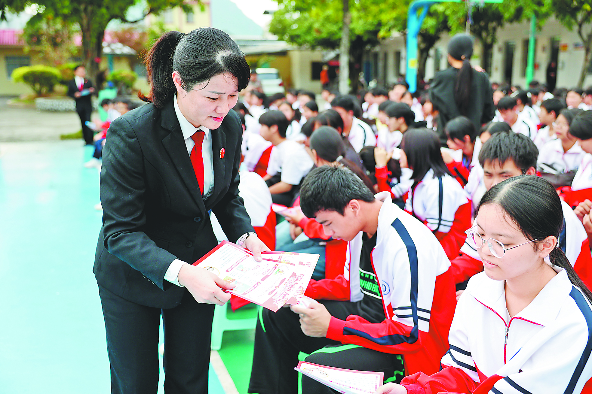 2025年10月29日,河池市宜州区人民法院刑事审判庭庭长、河池学院附中法治副校长赖艳军走进校园,为该校700余名师生送上一堂干货满满的法治必修课。
