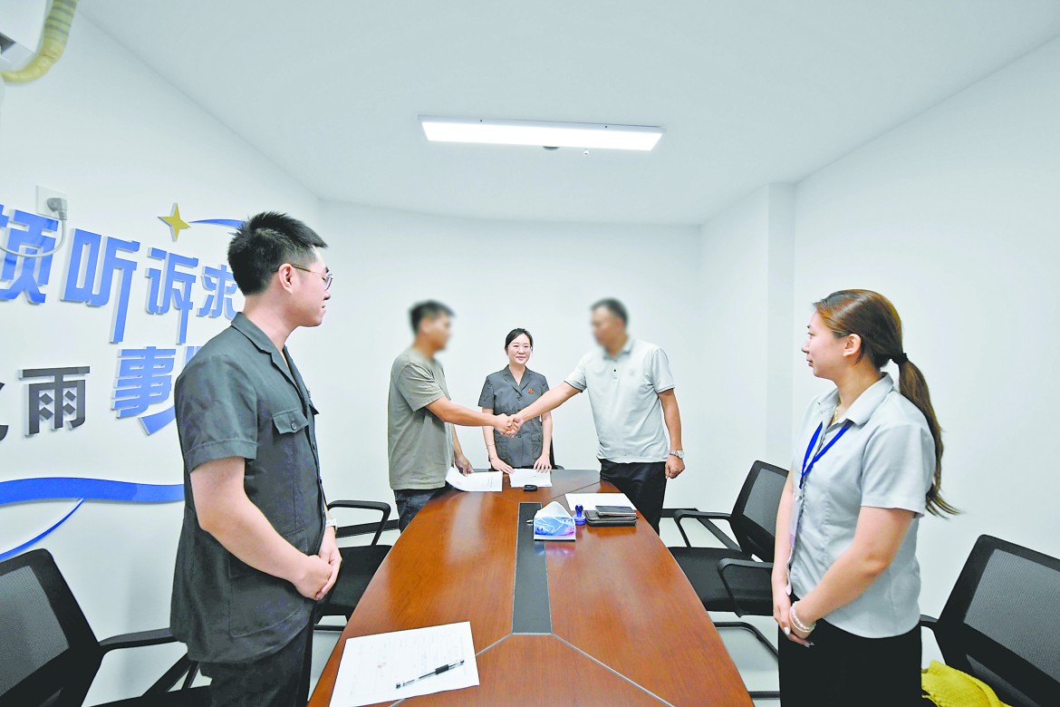 2025年8月29日,在北海市银海区综治中心调解室内,一起买卖合同纠纷的当事人在入驻法官调解下握手言和。