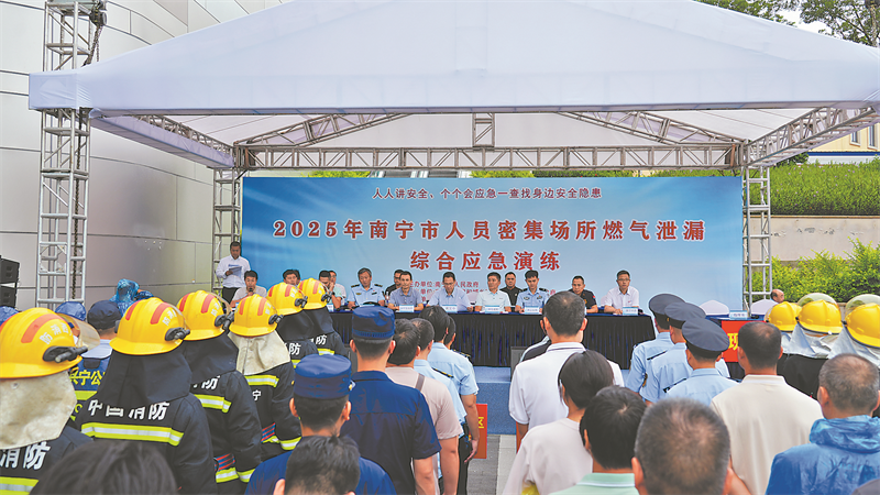 2025年南宁市人员密集场所燃气泄漏综合应急演练。刘俊杰/摄