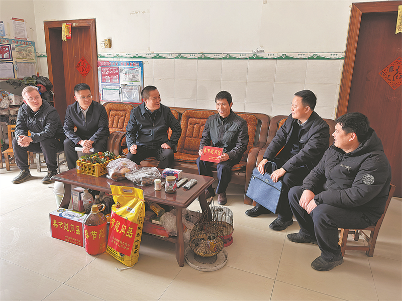 2月4日,博白县政协主席詹博深入基层,走访慰问生活困难党员、离退休干部、优秀人才、优抚对象及困难群众,向他们致以新春的美好祝福。朱 坤/摄
