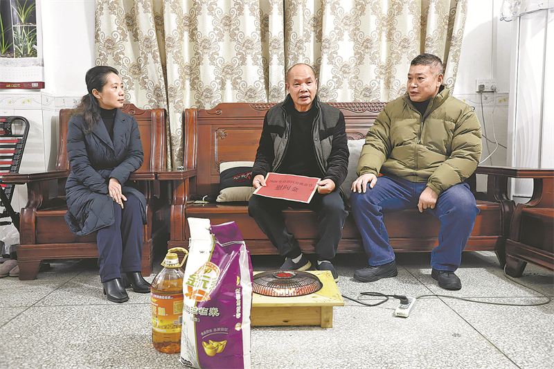 2月10日,荔浦市政协主席蒋战平到自治区劳模韦丛刚家中慰问。 龙劲松摄