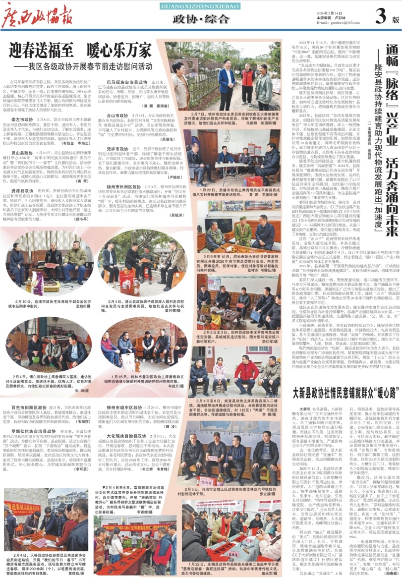- 第 3 版: 综合 迎春送福至 暖心乐万家——我区各级政协开展春节前走访慰问活动