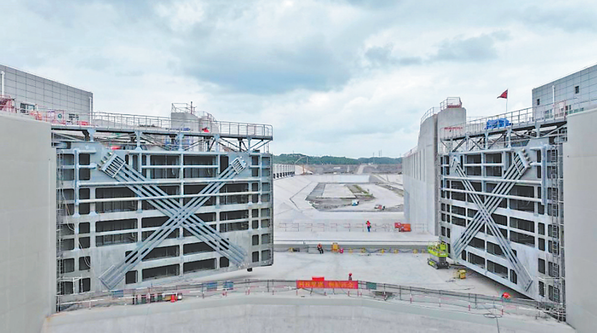 平陆运河青年枢纽无水单机单闸调试。 (平陆运河集团供图)