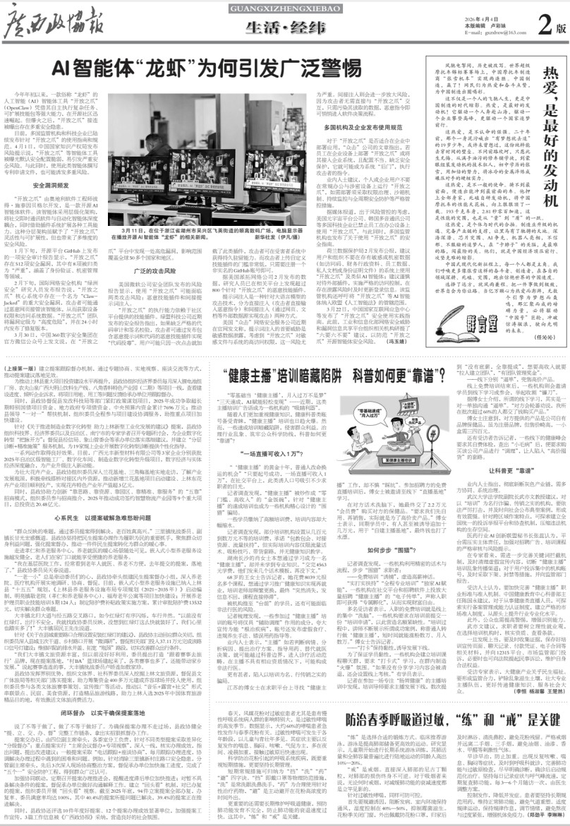 - 第 2 版: 生活经纬 AI智能体“龙虾”为何引发广泛警惕