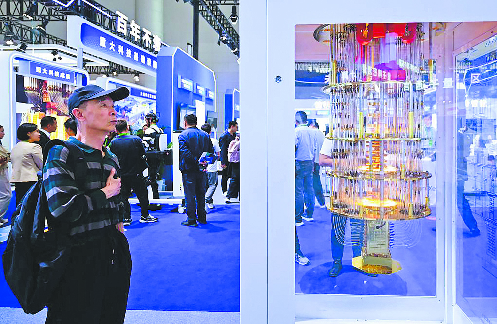 4月26日,观众在第四届中国(安徽)科技创新成果转化交易会上观看一款超导量子计算机模型。新华社记者 周牧 摄