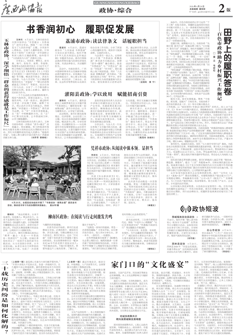 - 第 2 版: 综合 玉林市政协:深学细悟“群众的获得感就是工作标尺”
