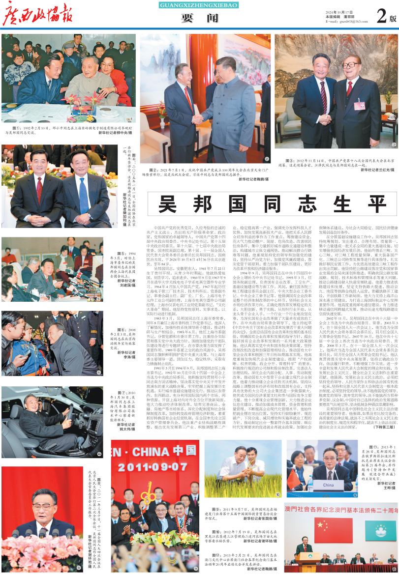 吴邦国同志生平