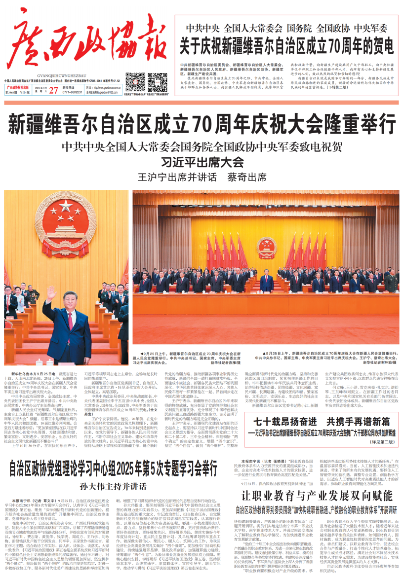- 第 1 版: 要闻 新疆维吾尔自治区成立70周年庆祝大会隆重举行