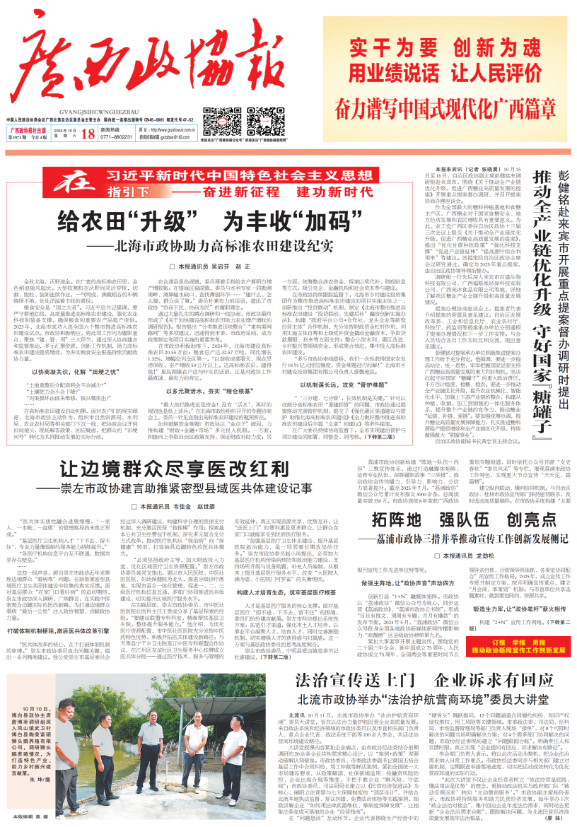 - 第 1 版: 要闻 给农田“升级” 为丰收“加码”——北海市政协助力高标准农田建设纪实