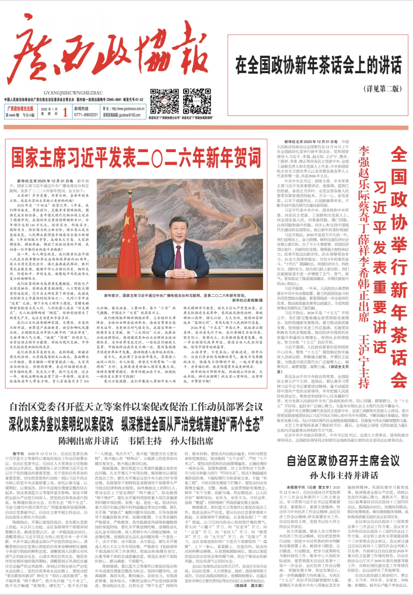 - 第 1 版: 要闻 国家主席习近平发表二〇二六年新年贺词