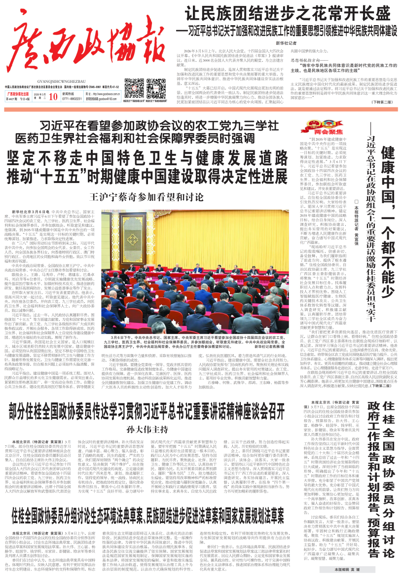 - 第 1 版: 要闻 习近平看望参加政协会议的农工党九三学社医药卫生界社会福利和社会保障界委员