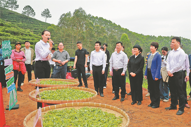 2025年4月8日,灵山县政协“乡村振兴 委员行动”暨农业“科技下乡”服务茶叶生产系列活动在丰塘镇六颜村、灵鑫生态茶园举办。 黄荷 摄