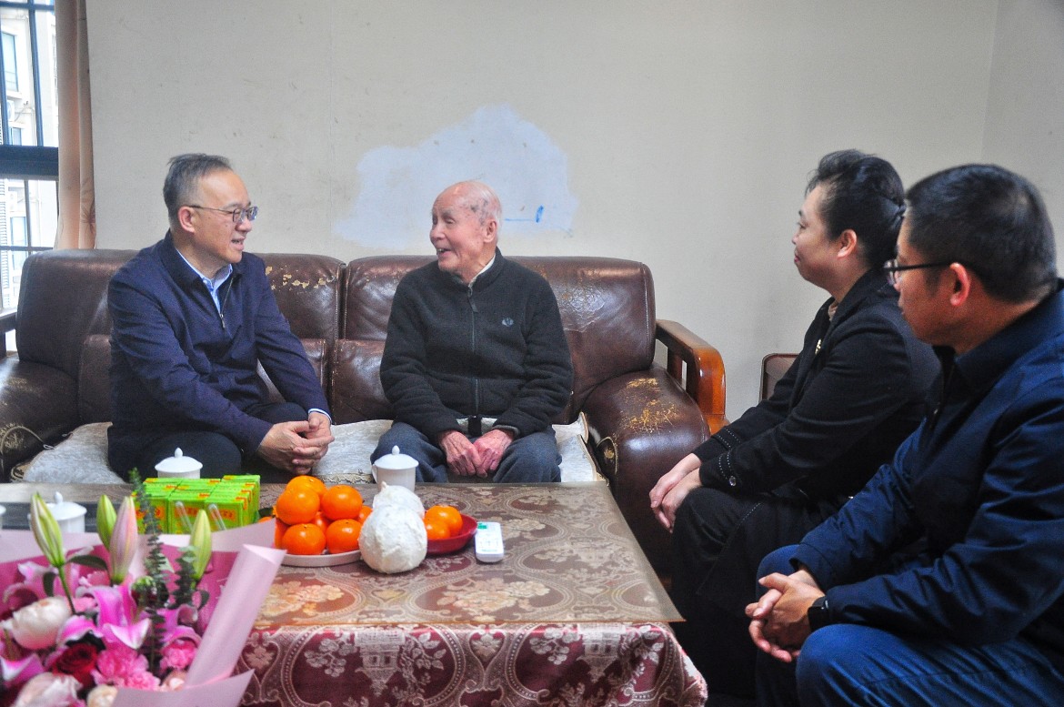 在老党员朱忠家中,黄俊华细心了解其身体情况,向他致以崇高敬意和诚挚问候,叮嘱有关部门做好服务保障,让老党员安享幸福晚年。