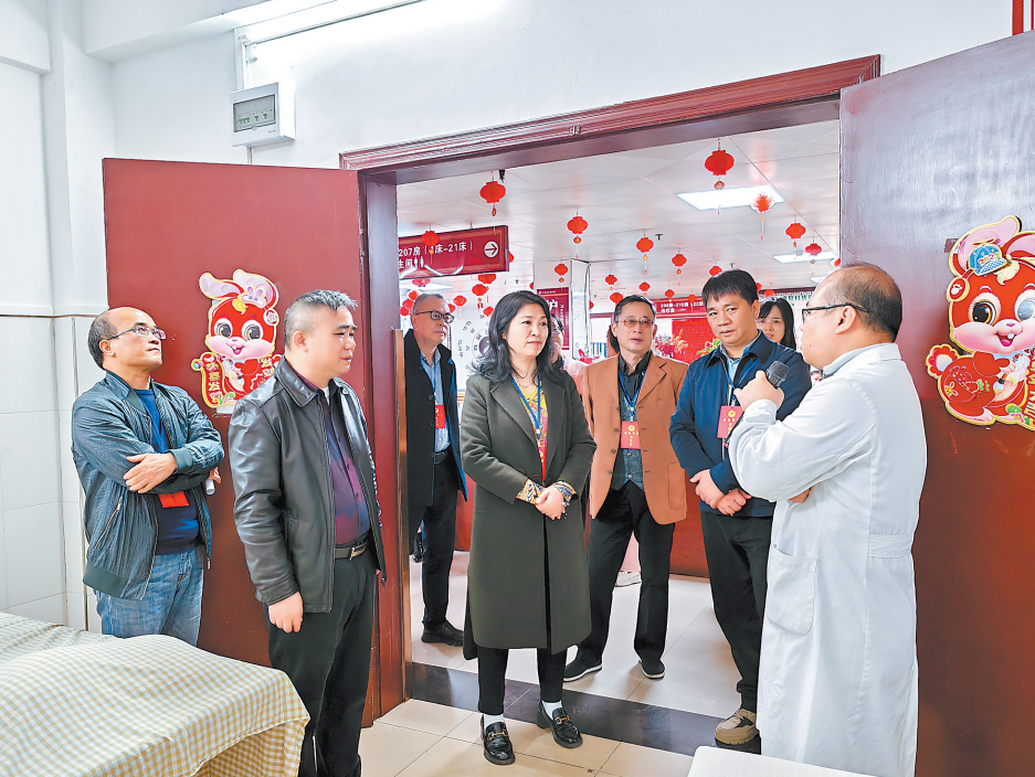 平乐县政协组织委员围绕“平乐县健康养生产业发展情况”开展专题调研,图为调研组在平乐县中医院调研康养科室。