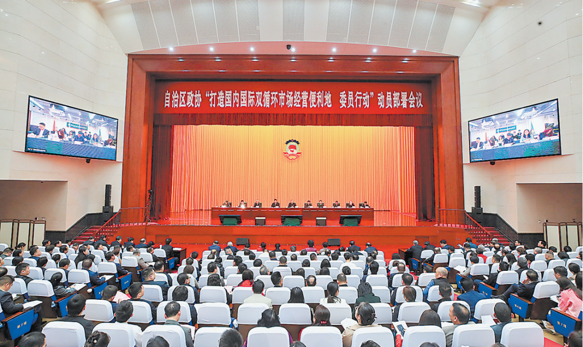 3月15日,自治区政协“打造国内国际双循环市场经营便利地 委员行动”动员部署会议在南宁召开。图为会议现场。本报记者/摄