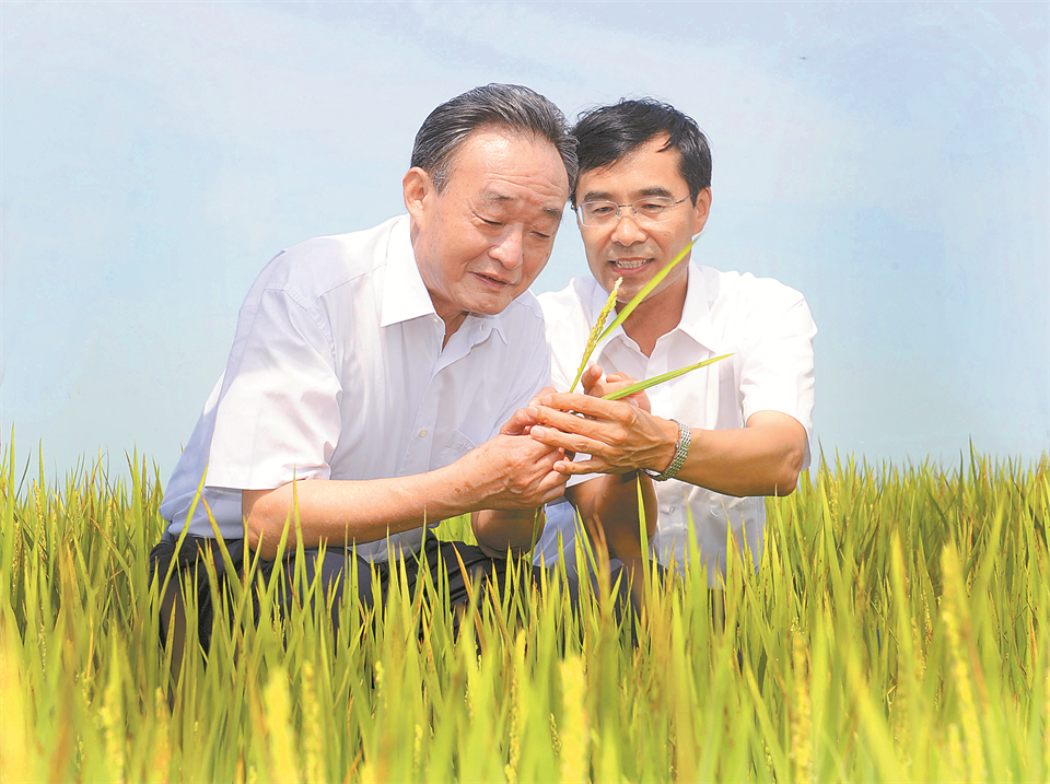 图⑩:2012年7月19日,吴邦国同志在黑龙江农垦建三江管理局二道河农场万亩大地号察看水稻长势。 新华社记者谢环驰/摄
