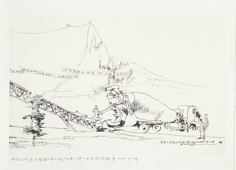 《工地车穿梭鲜见人影动》(速写)26×37cm