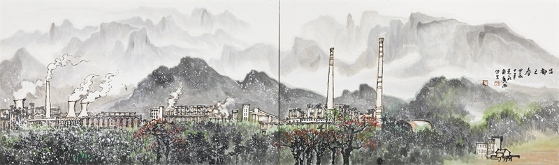 《铝都之春》(国画)39×130cm