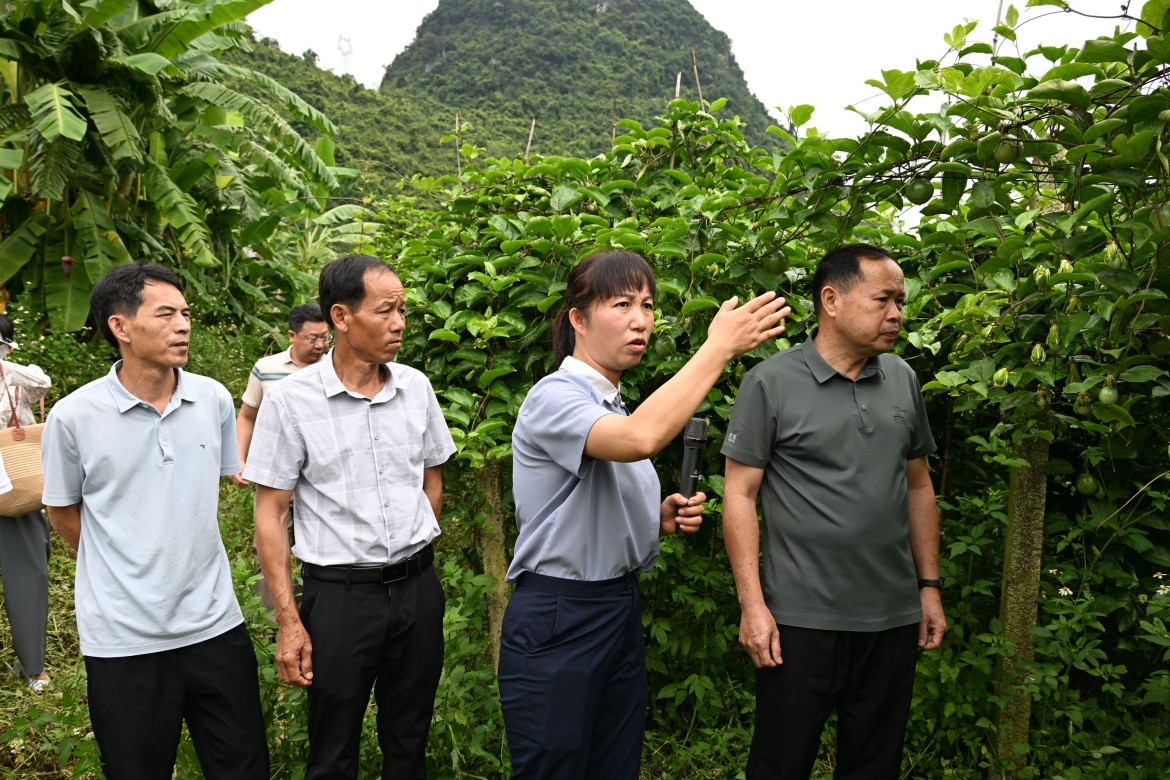 9月11日,罗城仫佬族自治县政协组织开展界别委员轮值活动。图为农业界委员深入特色水果种植基地,了解生产经营和联农带农情况,围绕电商赋能产业发展建言献策。 韦如代/摄