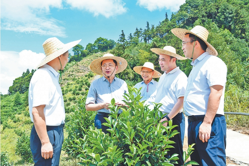 9月17日,钦州市政协主席吕洪安率调研组到浦北县调研特色农业产业发展情况,聚焦钦州市特色农业产业发展难点、堵点问题,围绕品种综合改良、品牌打造和保护、产业链延伸等关键问题献计献策,助推特色农业产业发展壮大。图为调研组在平睦镇钦香生态茶园基地调研。马振阳 陈国明/摄