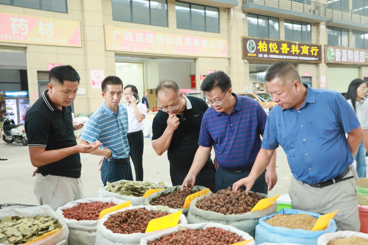 近日,凌云县政协主席罗胜明率住凌云县的百色市政协委员及部分县政协委员到南宁、钦州、玉林等相关县(区)开展专题考察,学习借鉴各地先进经验,为推动凌云县特色农业产业发展贡献政协智慧和力量。图为考察组在玉林福达国际香料物流港了解相关情况。 沈 默/摄