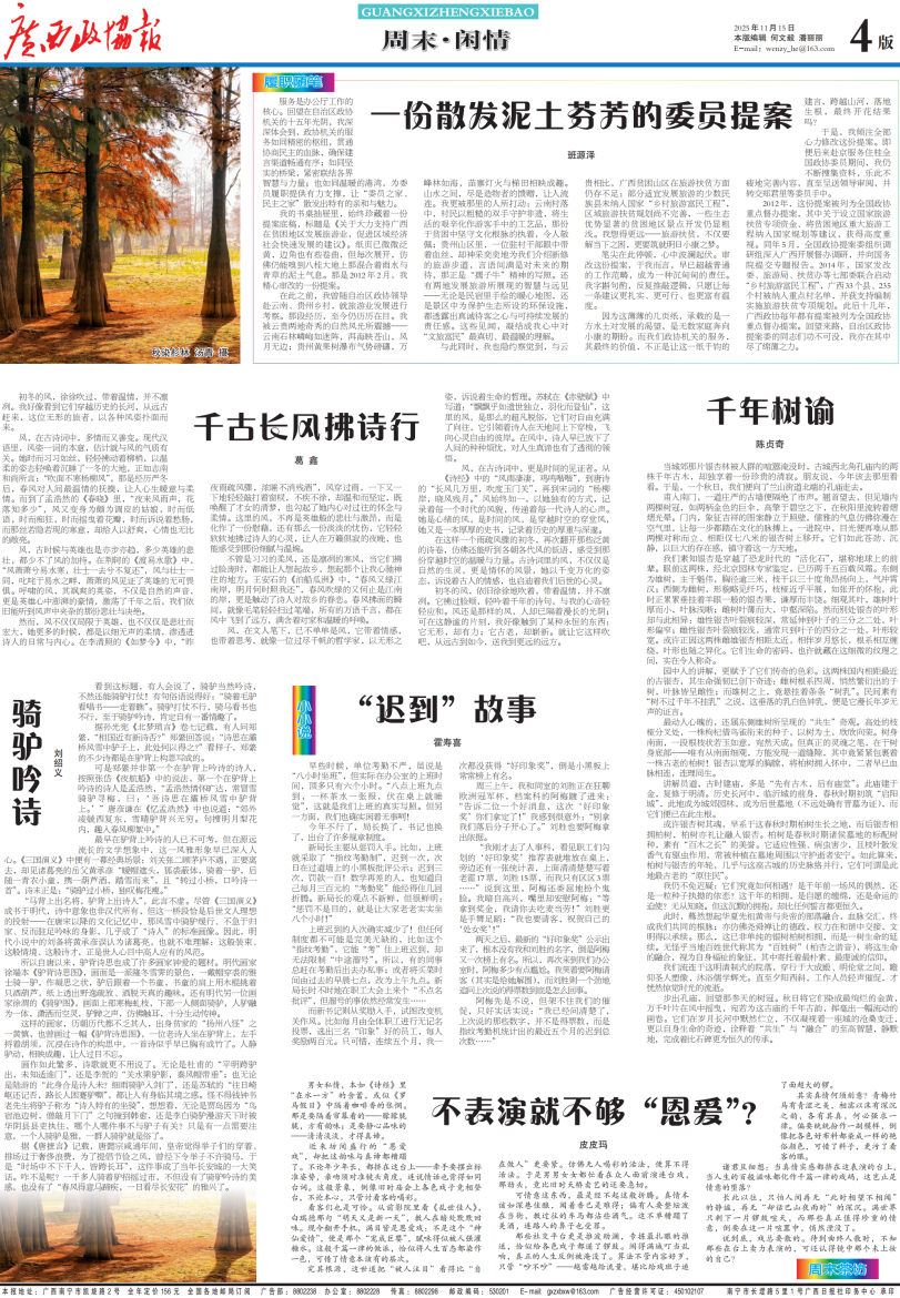 我的书桌抽屉里,始终珍藏着一份提案底稿,标题是《关于大力支持广西在贫困地区发展旅游业,促进区域经济社会快速发展的建议》。纸页已微微泛黄,边角也有些卷曲,但每次展开,仿佛仍能嗅到八桂大地上那混合着雨水与青草的泥土气息。那是2012年2月,我精心审改的一份提案。