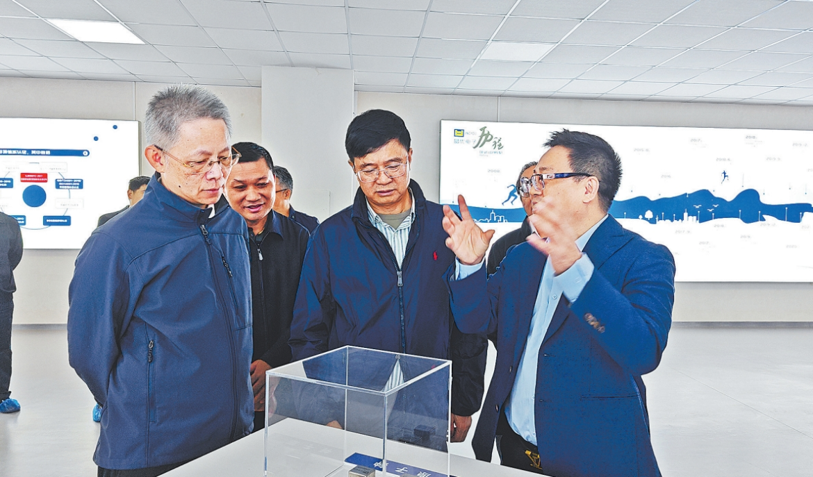11月25日,崇左市政协主席王建毅率队赴凭祥市,实地督导涉重金属环境安全隐患排查整治“回头看”及矿业权整合工作,推动问题整改与资源高效利用。图为工作组在广西晶优电子科技有限公司了解有关情况。 韦佳金 庞海文/摄
