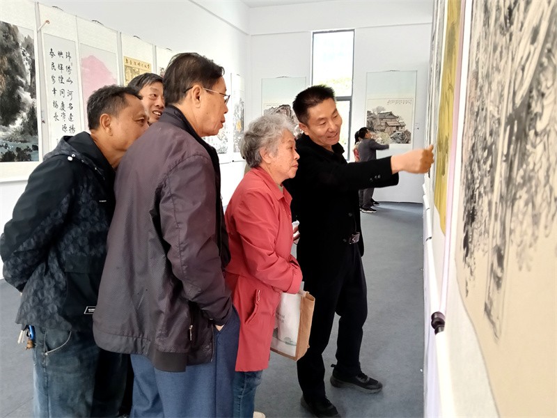 近日,资源县举办经贸文化系列活动,广大政协委员积极参与其中,志愿担当讲解员、宣传员和特色产品促销员等,为助推发展贡献力量。图为县政协委员在书画展上为群众讲解资源县书画艺术发展特色及所取得的成果。舒小芩/摄