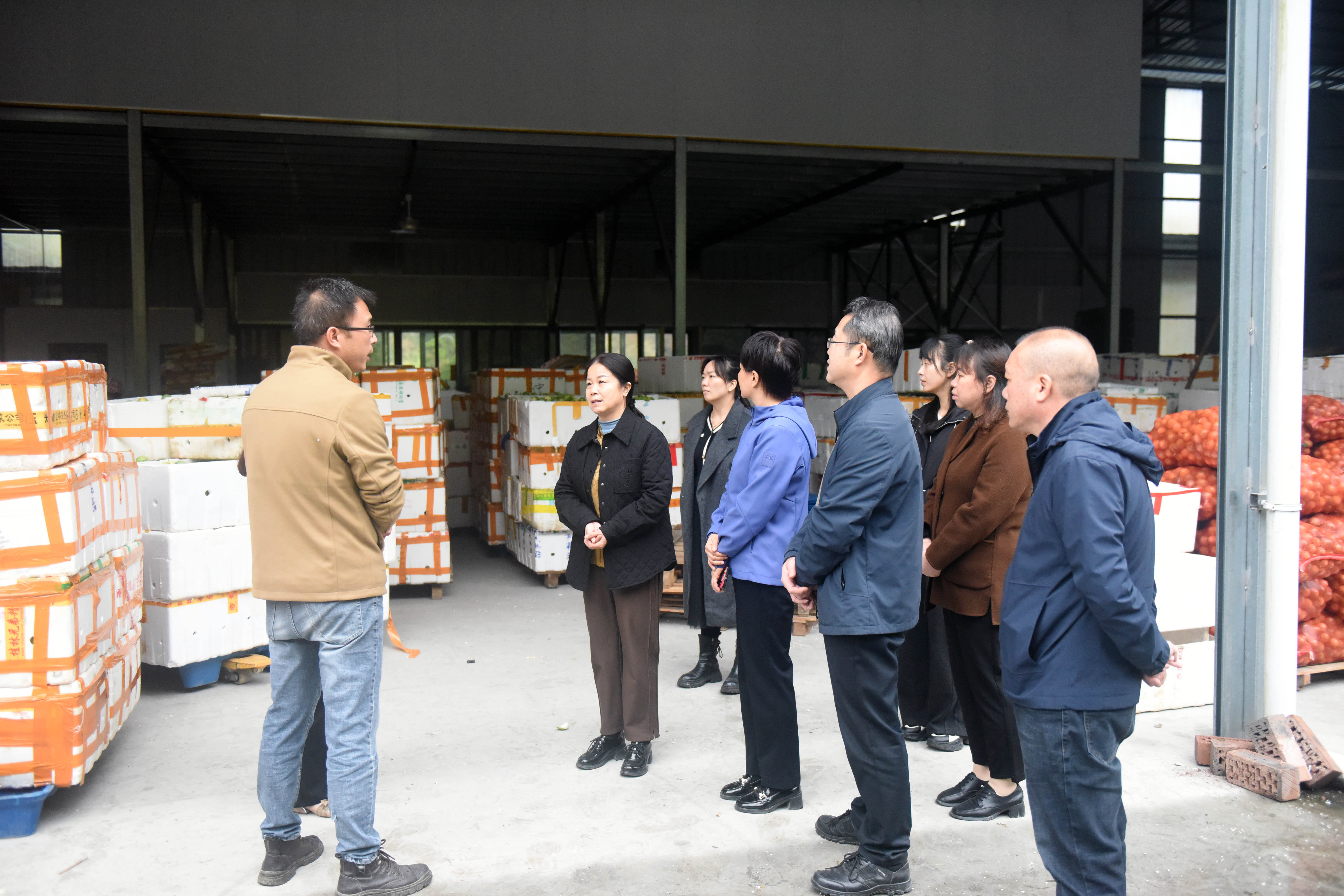近日,龙胜各族自治县政协主席杨桂姬率队深入滑石加工和电商企业,走访看望政协委员,实地调研产业发展现状,倾听委员心声,共商发展良策。图为走访组在龙胜民强农业开发专业合作社了解特色农产品销售情况。吴生斌/摄