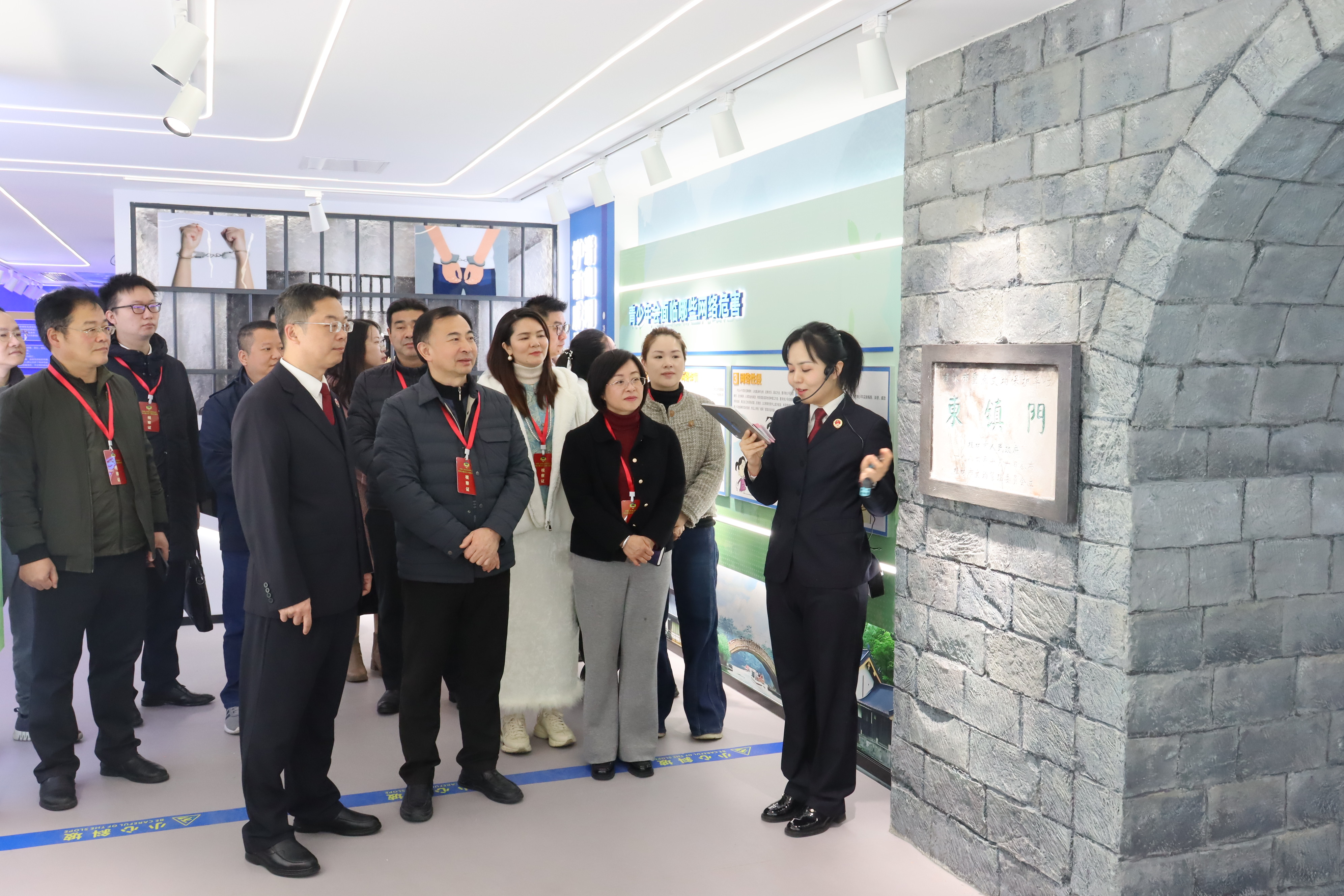 近日,桂林市叠彩区政协主席曾建勋率队调研未成年人犯罪预防和治理工作。图为调研组在叠彩区人民检察院未成年人法治教育基地了解有关情况。 韦建升/摄