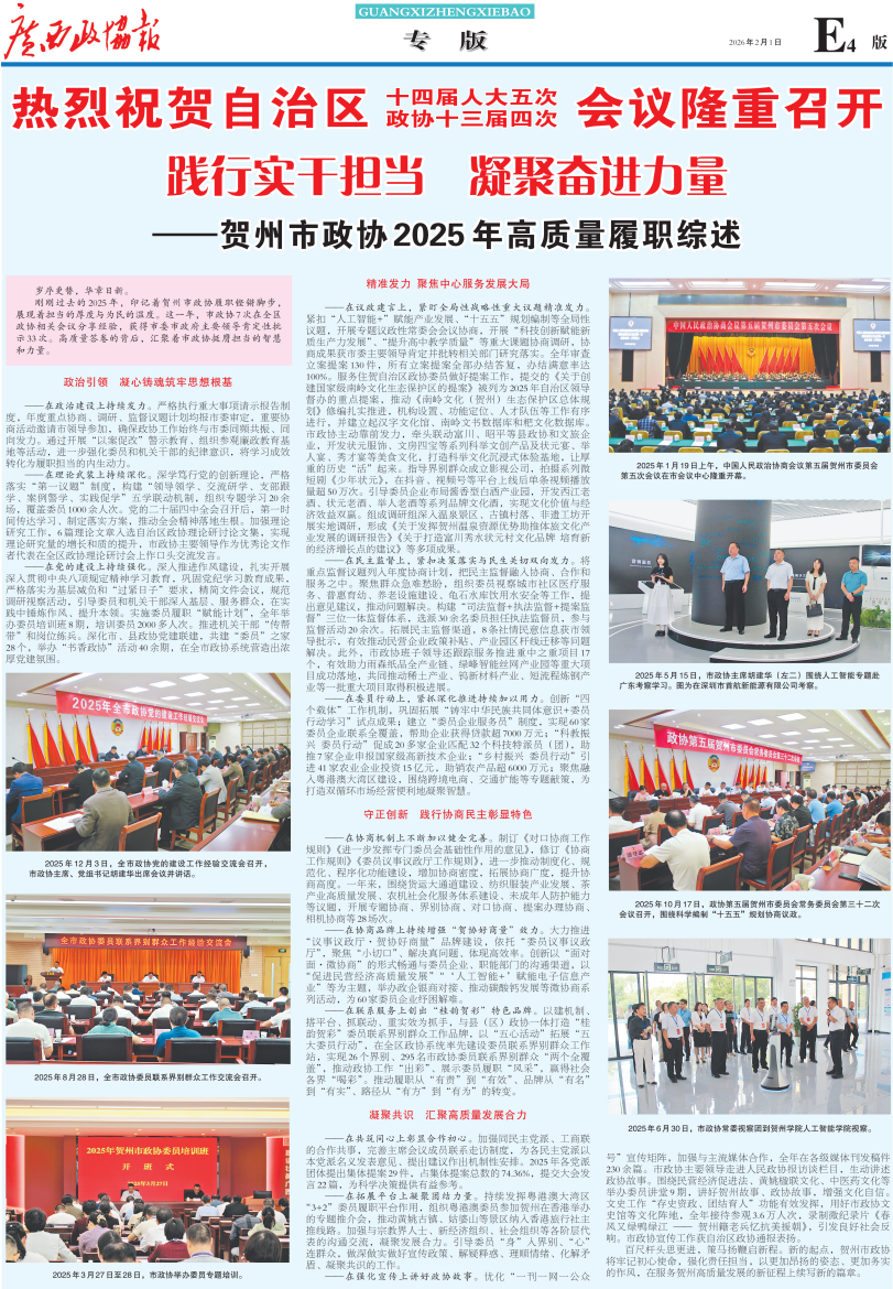 - 第 19 版: 专版 践行实干担当 凝聚奋进力量——贺州市政协2025年高质量履职综述
