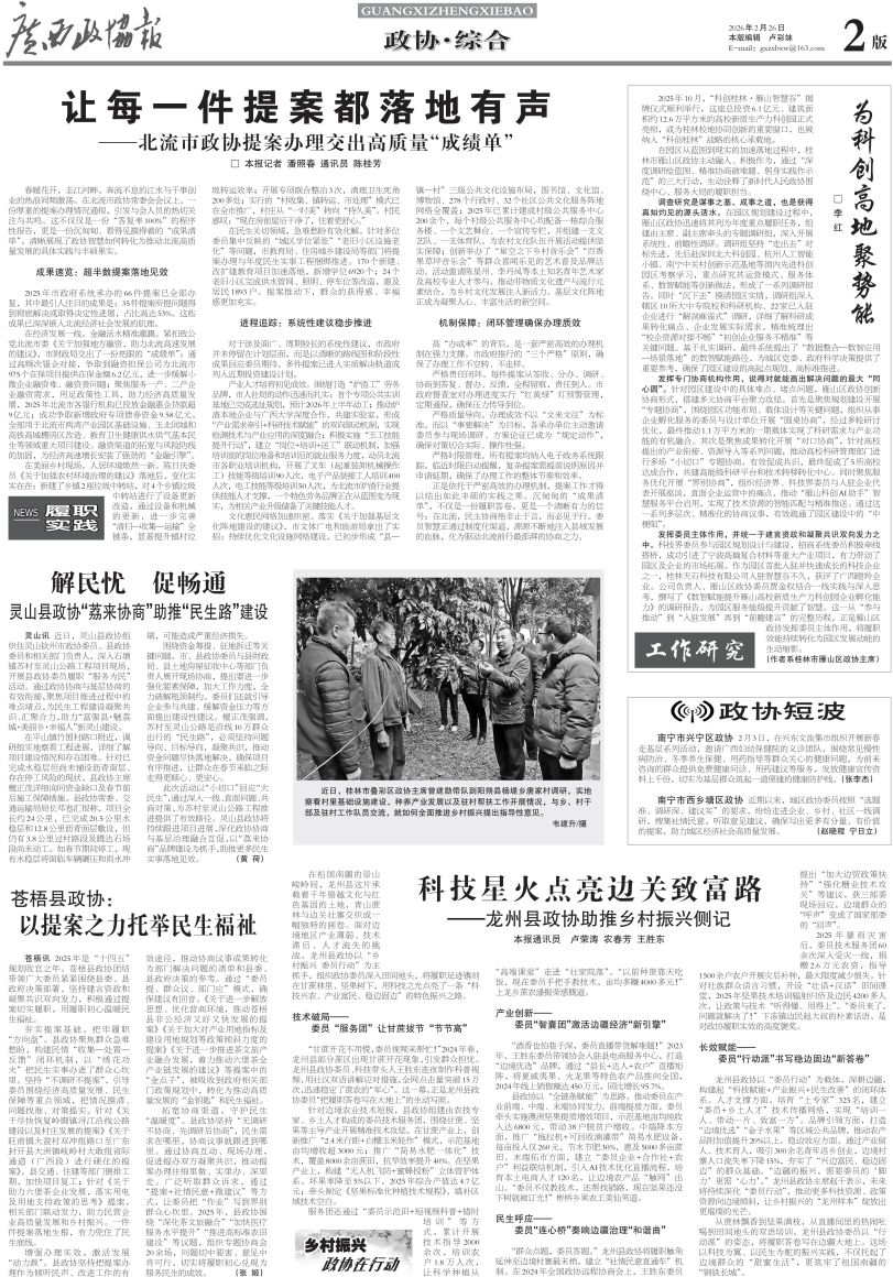 - 第 2 版: 综合 让每一件提案都落地有声——北流市政协提案办理交出高质量“成绩单”