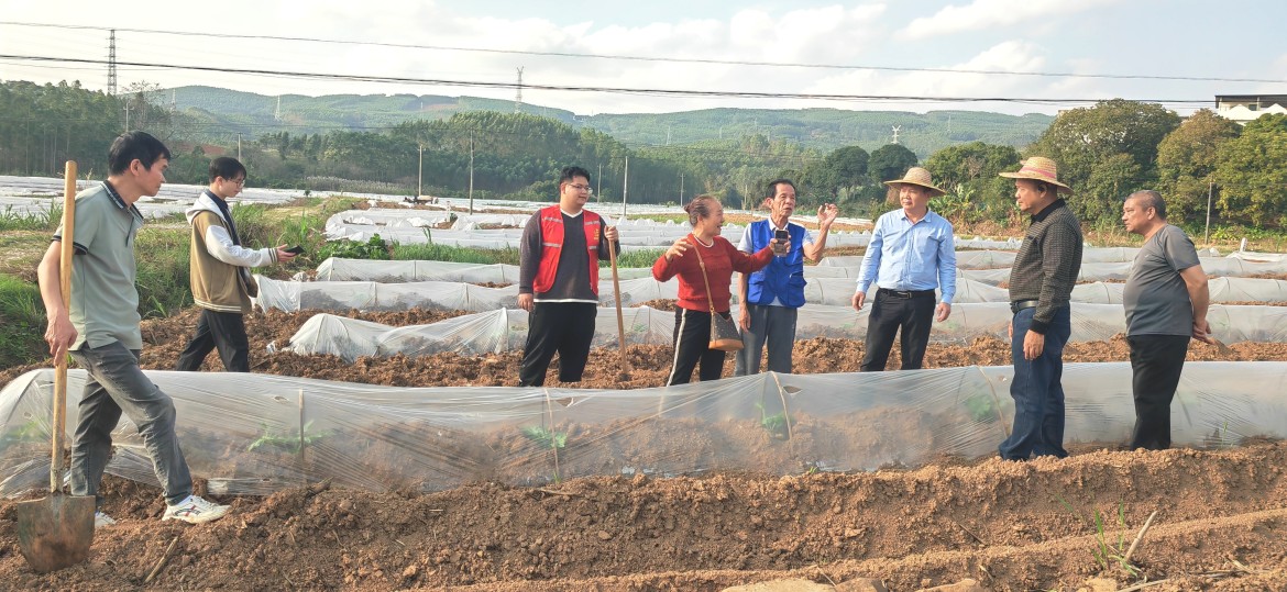 近日,宁明县政协组织委员和技术人员深入田间地头,针对甘蔗地套种西瓜的田间管理为农户开展技术指导。 朱格民 周凤敏/摄