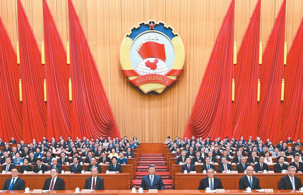 三月的北京,春启华章。人民大会堂大礼堂灯光璀璨,气氛隆重热烈。中国人民政治协商会议会徽悬挂在主席台正中,十面鲜艳的红旗分列两侧。