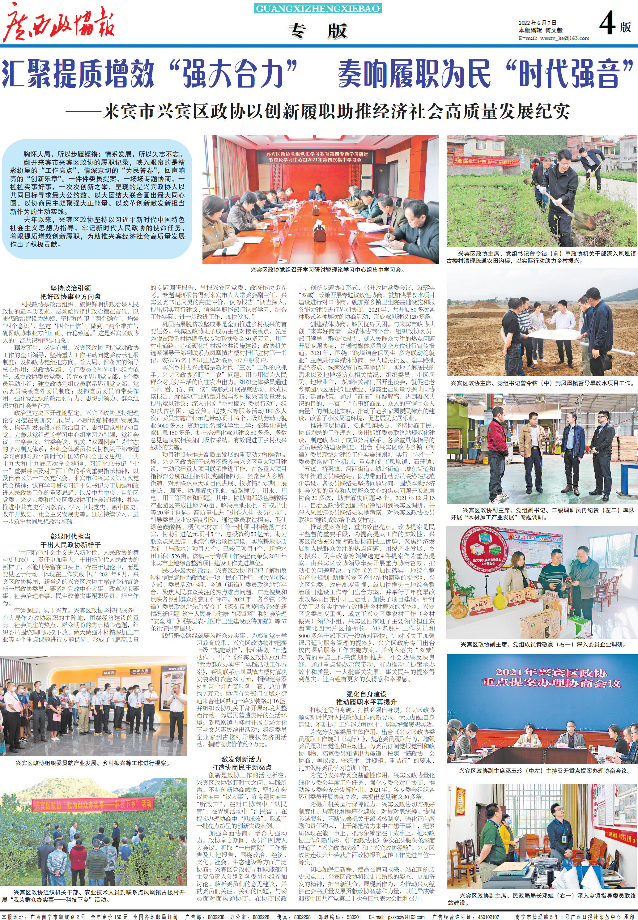- 汇聚提质增效“强大合力” 奏响履职为民“时代强音”——来宾市兴宾区政协以创新履职助推经济社会高质量发展纪实