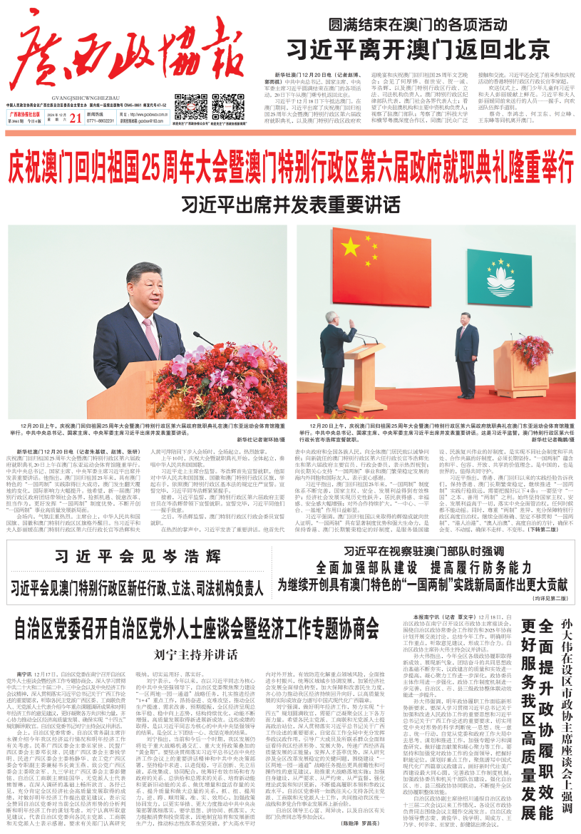 - 第 1 版: 要闻 庆祝澳门回归祖国25周年大会暨澳门特别行政区第六届政府就职典礼隆重举行 习近平出席并发表重要讲话