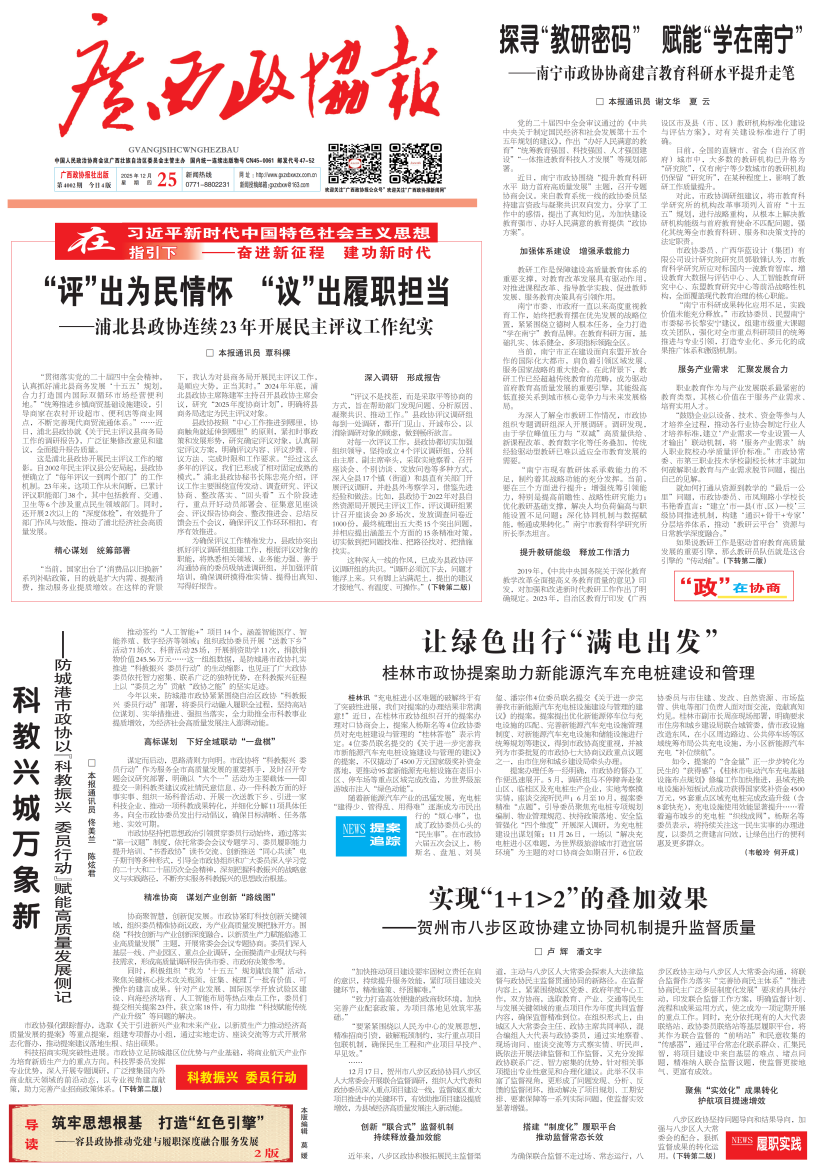 - 第 1 版: 要闻 “评”出为民情怀 “议”出履职担当——浦北县政协连续23年开展民主评议工作纪实