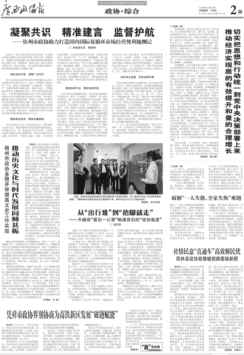 - 第 2 版: 综合 凝聚共识 精准建言 监督护航——钦州市政协助力打造国内国际双循环市场经营便利地侧记