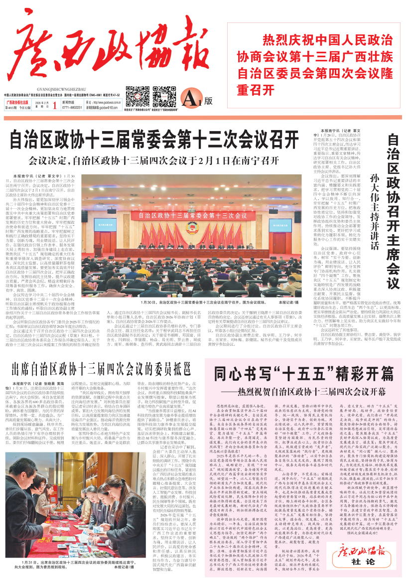- 第 1 版: 要闻 自治区政协十三届常委会第十三次会议召开 会议决定,自治区政协十三届四次会议于2月1日在南宁召开